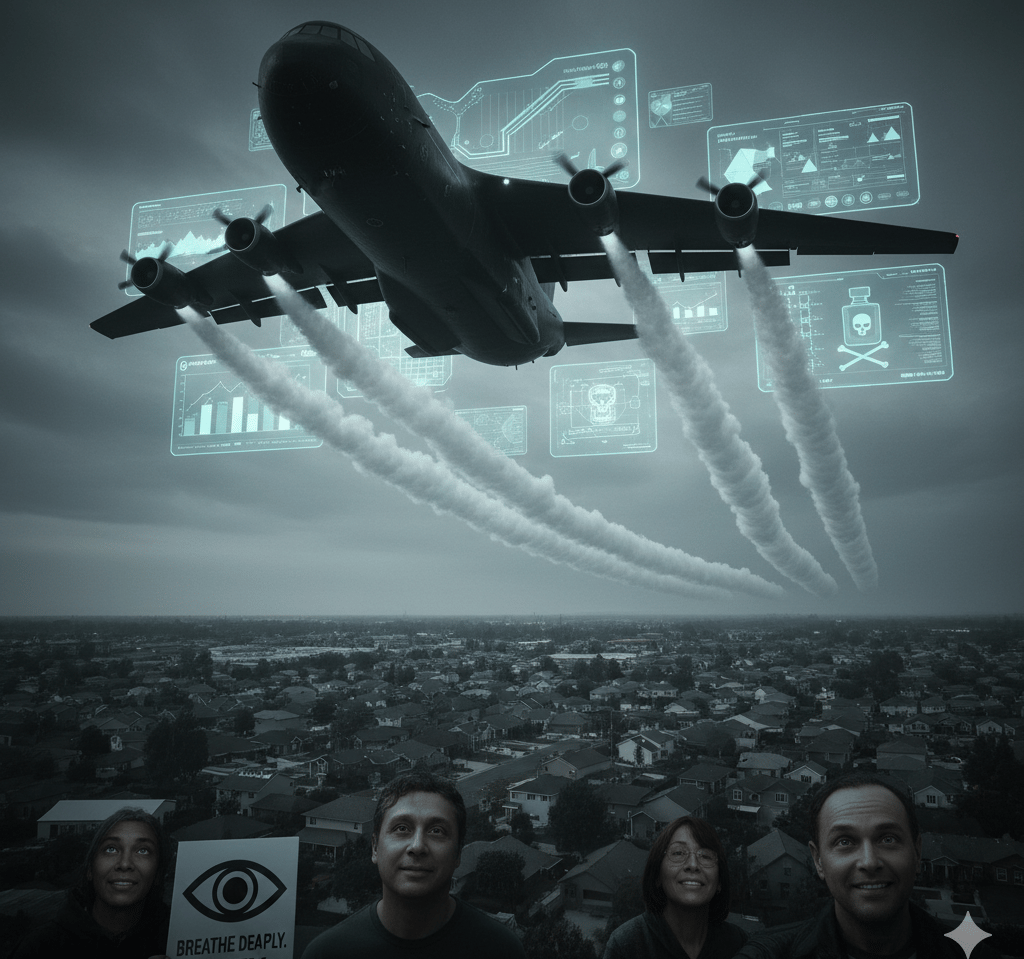 Os produtos químicos pulverizados incluiriam alumínio, bário e estrôncio. Segundo os teóricos, isto explica por que razão as plantas estão a morrer e por que razão toda a gente se sente cansada. Não é o stress do trabalho ou a má alimentação; é o "spray do governo" que cai sobre nós todas as manhãs como se fôssemos baratas de luxo.